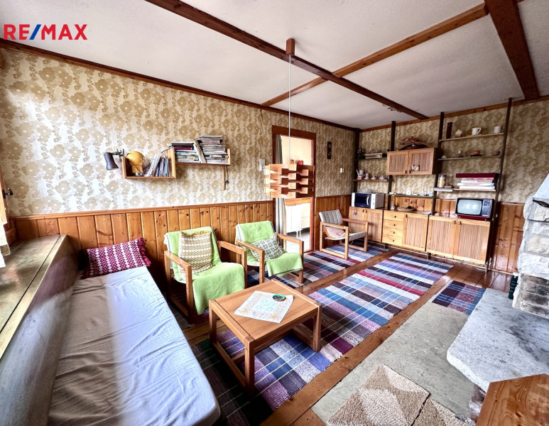 Chata je z roku 1970 a má podsklepenou terasu (sklep 8,5 m2), vstupní verandu 5,4 m2, kuchyň 3 m2, obývací pokoj 14,3 m2, dvě malé ložnice 4 m2 + 4,1 m2 a koupelnu s WC 2,5 m2.