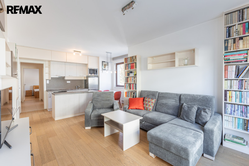 Byt o ploše 55 m2 s terasou 11 m2 a zahrádkou (20 m2) je plně vybaven a zařízen nábytkem. Kuchyňská linka včetně elektrospotřebičů – varné desky, horkovzdušné trouby a mikrovlnné trouby, myčky a lednice s mrazákem, stůl se židlemi. Z obývacího pokoje, který je vybaven sedací soupravou a nábytkem je přímo vstup na terasu. Ložnice je vybavena manželskou postelí a vestavěnými skříněmi. V předsíni další úložné prostory ve skříních. Koupelna se sprchovým koutem a WC dohromady, k dispozici je pračka.