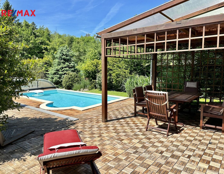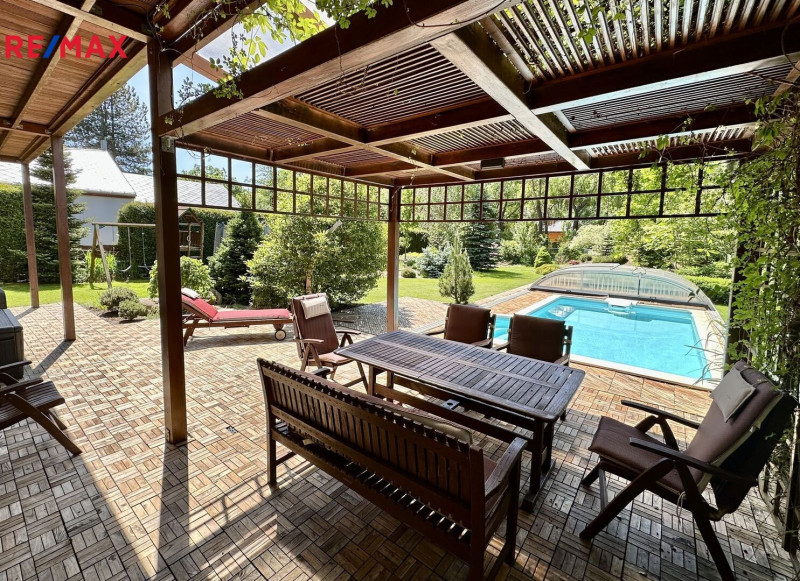 Exkluzivně nabízíme krásný rodinný dům s dispozicí 5+1 + terasa s pergolou, nádhernou zahradou a bazénem, v klidné lokalitě v obci Hrusice, nedaleko Prahy.