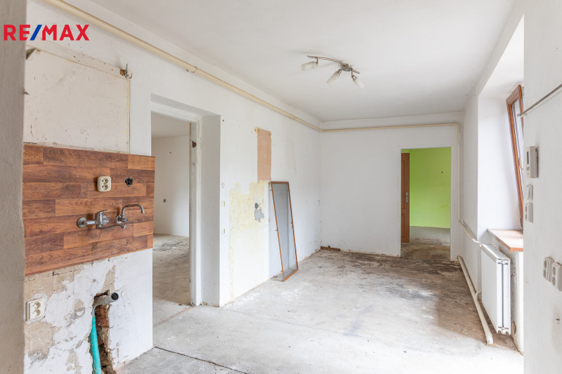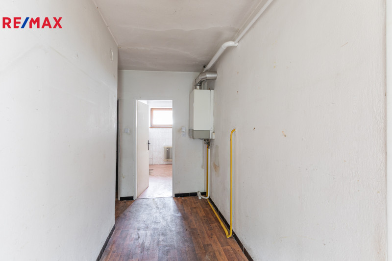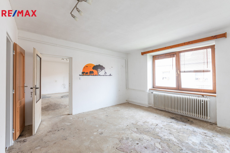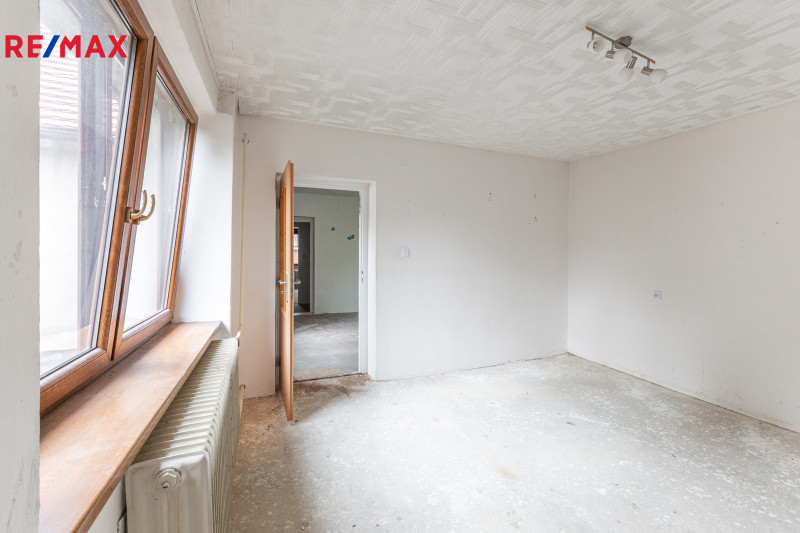 Dům je v dobrém stavu a lze v něm bydlet i po menší rekonstrukci, je ale také připraven na větší zásah a výrazné rozšíření jeho užitné plochy do podkroví. V tuto chvíli je rozdělen na byt 4+1 s vytápěním plynovým kotlem, novějšími okny a částečně rekonstruovanými rozvody, dále je k dispozici velká dílna se vstupem na půdu při průjezdu do dvora, garáž s dalším průjezdem do dvora a obrovská stodola 14,9 x 8,1 m.