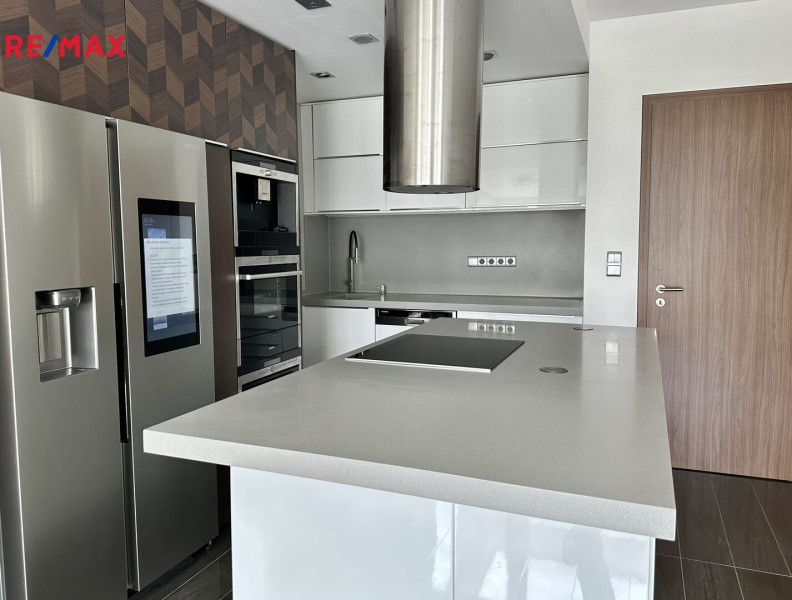 Exkluzivně nabízíme výborně řešený luxusní byt 4+kk/T, L (o výměře 114,2 m2 včetně terasy 26,4 m2 a zasklené lodžie 6,2 m2) který se nachází v pátém nadzemním podlaží novostavby Prosek Park, v pěší vzdálenosti od stanice metra Střížkov.