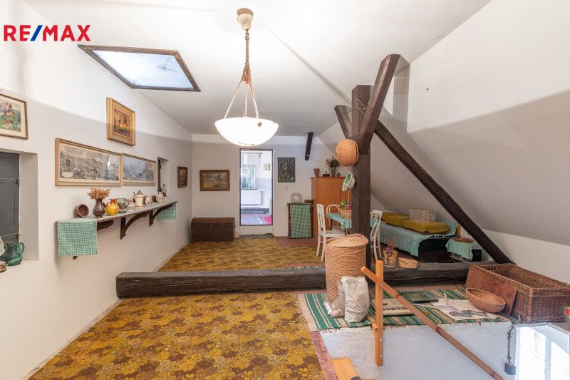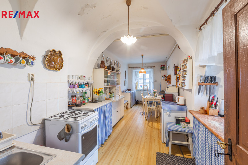 Velkoryse řešený, prostorný dům z roku 1830 byl původně dispozičně řešen jako dva samostatné byty. Je částečně podsklepený, postupně bylo upraveno pro bydlení i podkroví. Dům se zachovalými původními prvky se stodolou a přilehlými hospodářskými drobnými stavbami tvoří uzavřenou část s altánem a dokonalým soukromím. Budovu je možné dispozičně měnit dle vlastních potřeb. Za stodolou je rozlehlá zahrada 383m2. Zastavěná plocha domu je 163m2, s přilehlými stavbami 515m2.