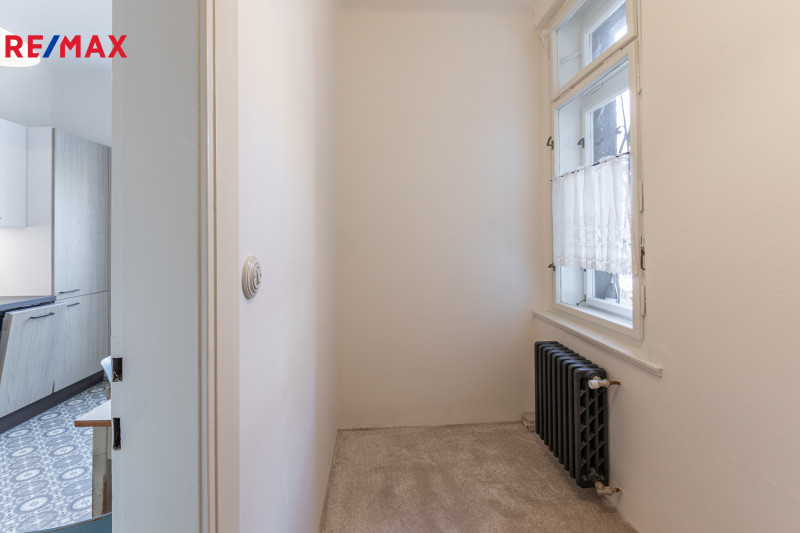 Doporučuji shlédnout virtuální prohlídku bytu. Byt sestává z prostorné vstupní místnosti, obývacího pokoje / ložnice, samostatné toalety s pračkou, koupelny s vanou, kuchyně vybavené spotřebiči včetně myčky a malé místnosti vhodné jako pracovna nebo komora. Okna jsou původní dřevěná. K bytové jednotce patří také vlastní komora umístěná ve sdíleném, uzamykatelném prostoru se sousedním bytem, kde je i vstup na malý sdílený balkon. Sousední byt tento sdílený prostor využívá i pro uložení věcí menších věcí.