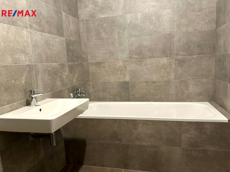 Nemovitost disponuje velkou místností s kuchyňským koutem, chodbou a velkou koupelnou s vanou a WC. Balkon/terasa má hezký výhled na východní stranu. Byt je vybaven novu kuchyňskou linkou s vestavěnými spotřebiči a vestavěnou skříní v předsíni. Ohřev teplé vody a vytápění je centrální. K bytu náleží vnitřní garážové stání a zděný sklep.